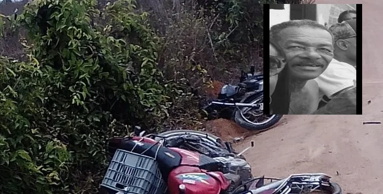 A guarnição da PM acompanhou a ambulância até o local informado, sendo avistadas as duas motocicletas caídas ao solo e o corpo de Flávio Macedo Ribeiro de 70 anos do Povoado de Lagoa do Cipó sob uma delas.