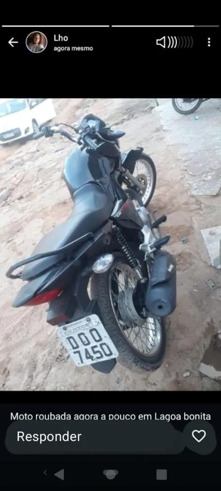 Uma motocicleta foi roubada na noite desta segunda-feira (14) no povoado de Lagoa Bonita, localizado no município de Utinga, na Bahia.