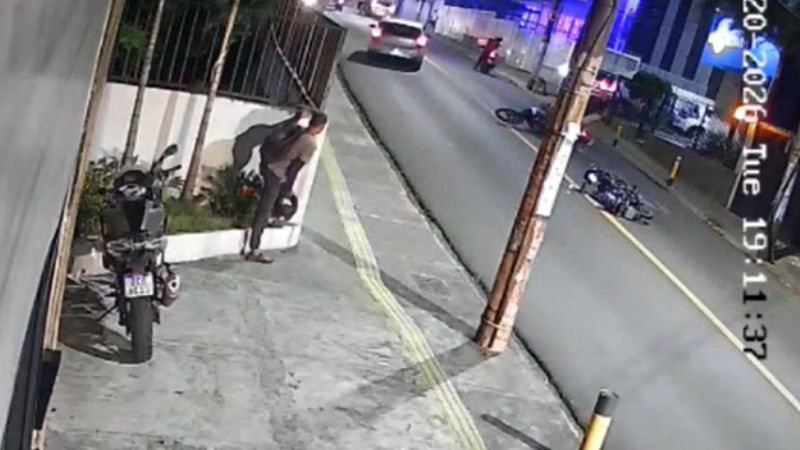 A câmera de segurança de um condomínio registrou toda a ação. Nas imagens, é possível ver que a vítima estava de moto e saía de uma padaria. O norte-americano foi abordado por dois suspeitos que estavam em outra moto e entrou em luta corporal com eles.